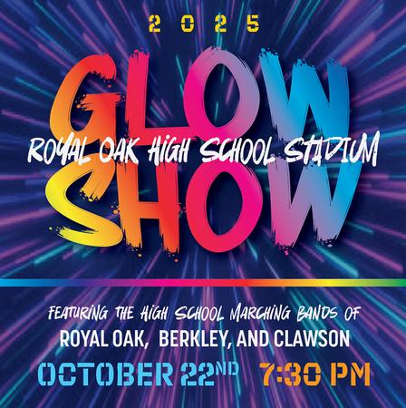 Join us for the annual Glow Show featuring the marching bands of Royal Oak, Berkley, and Clawson! It will be an unforgettable night of music, lights, and community spirit.